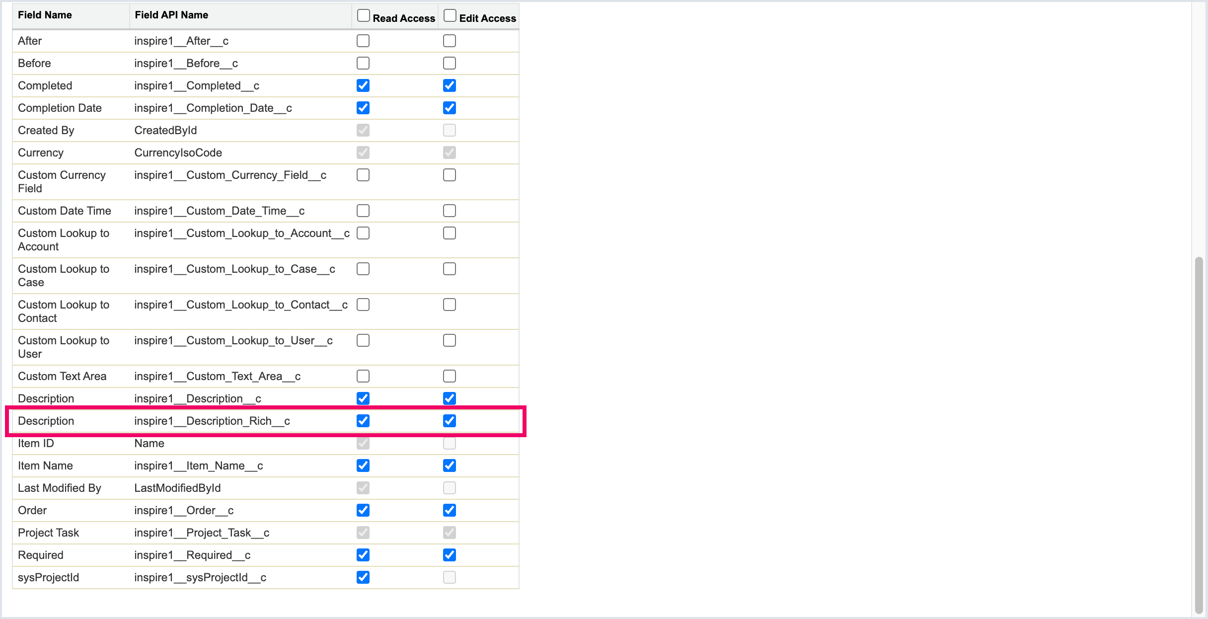 Begin by granting access to the Rich Text Description field in the Checklist Items object.
