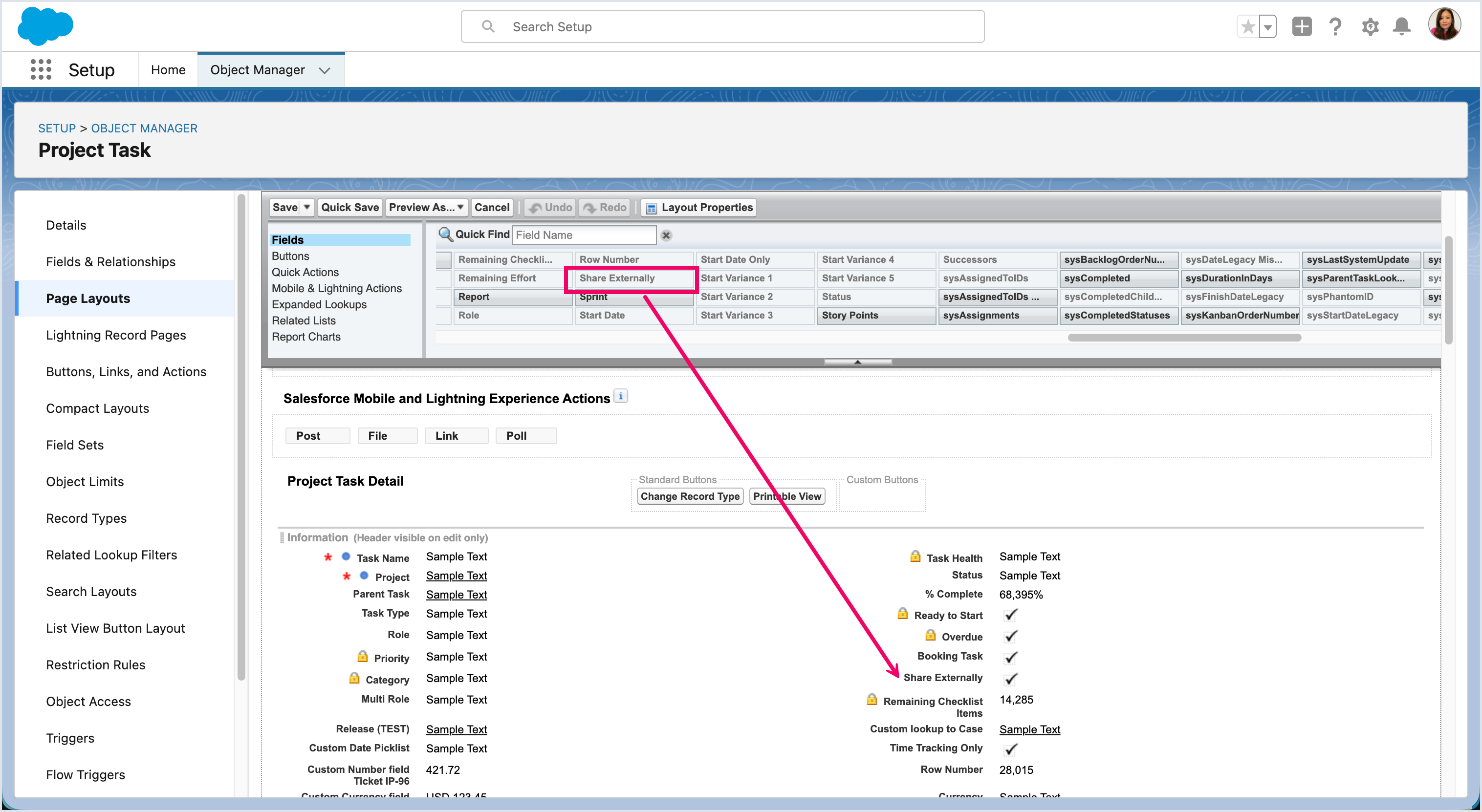 Begin by granting access to the Share Externally field in the Project Task object.