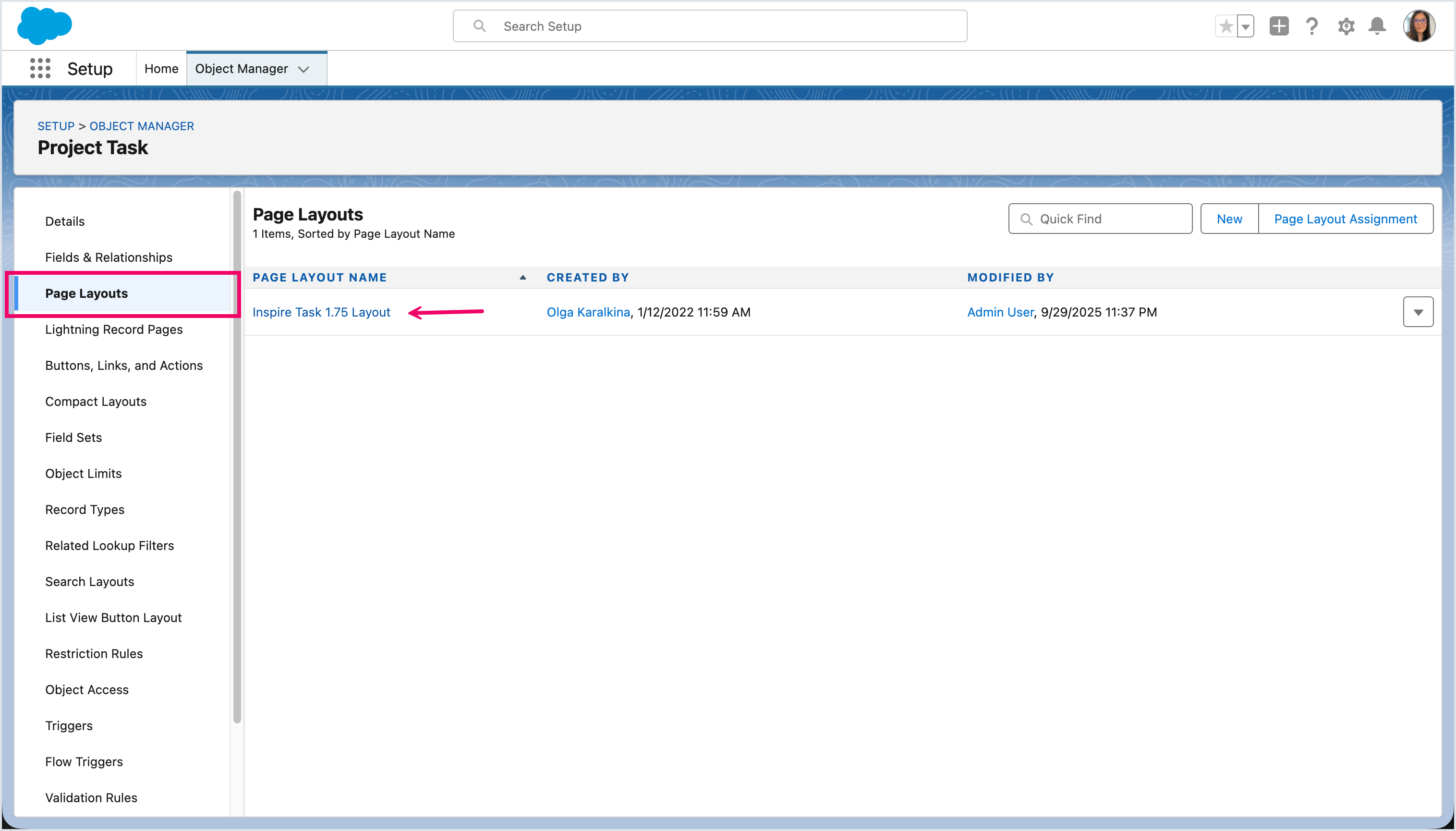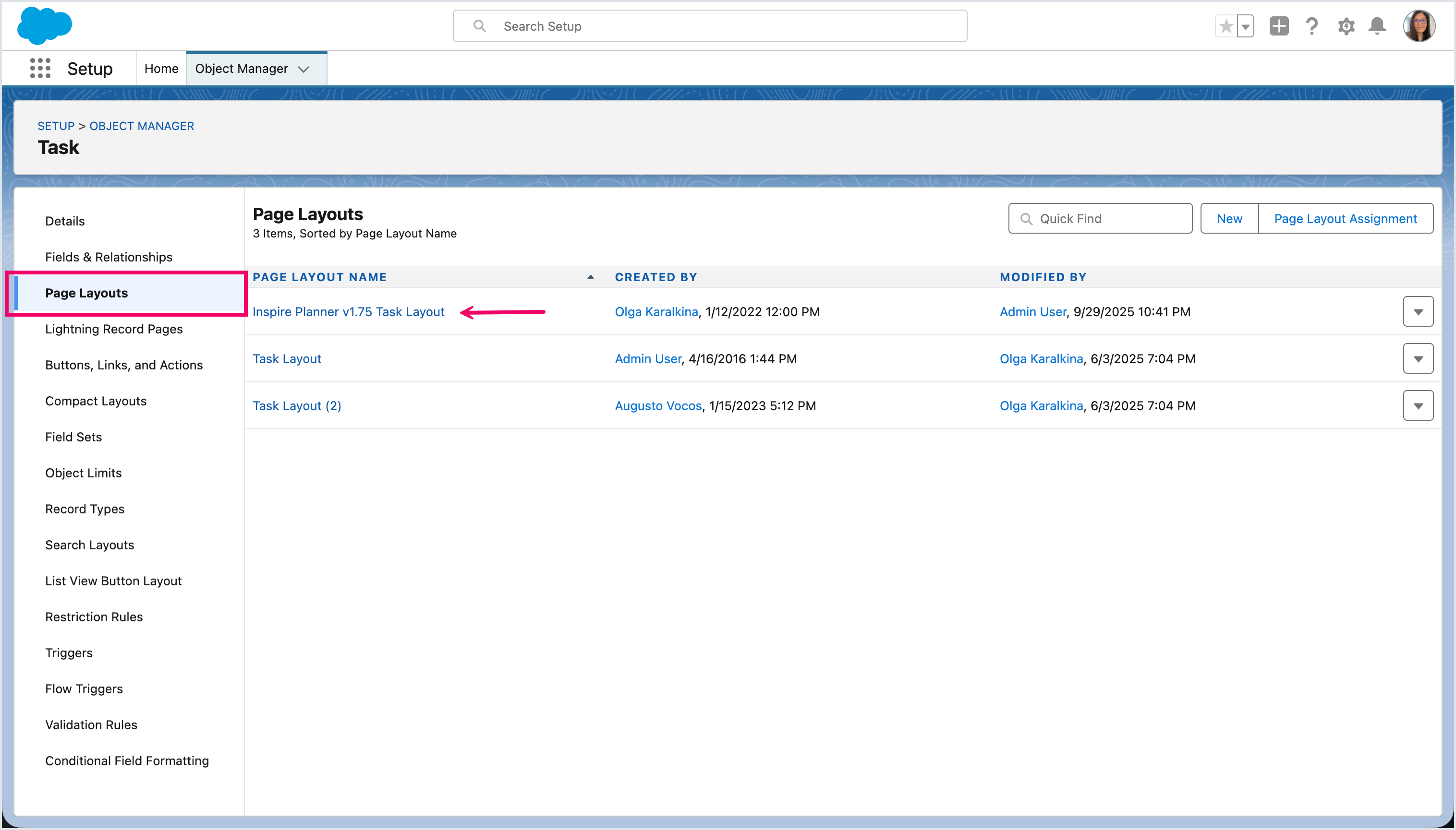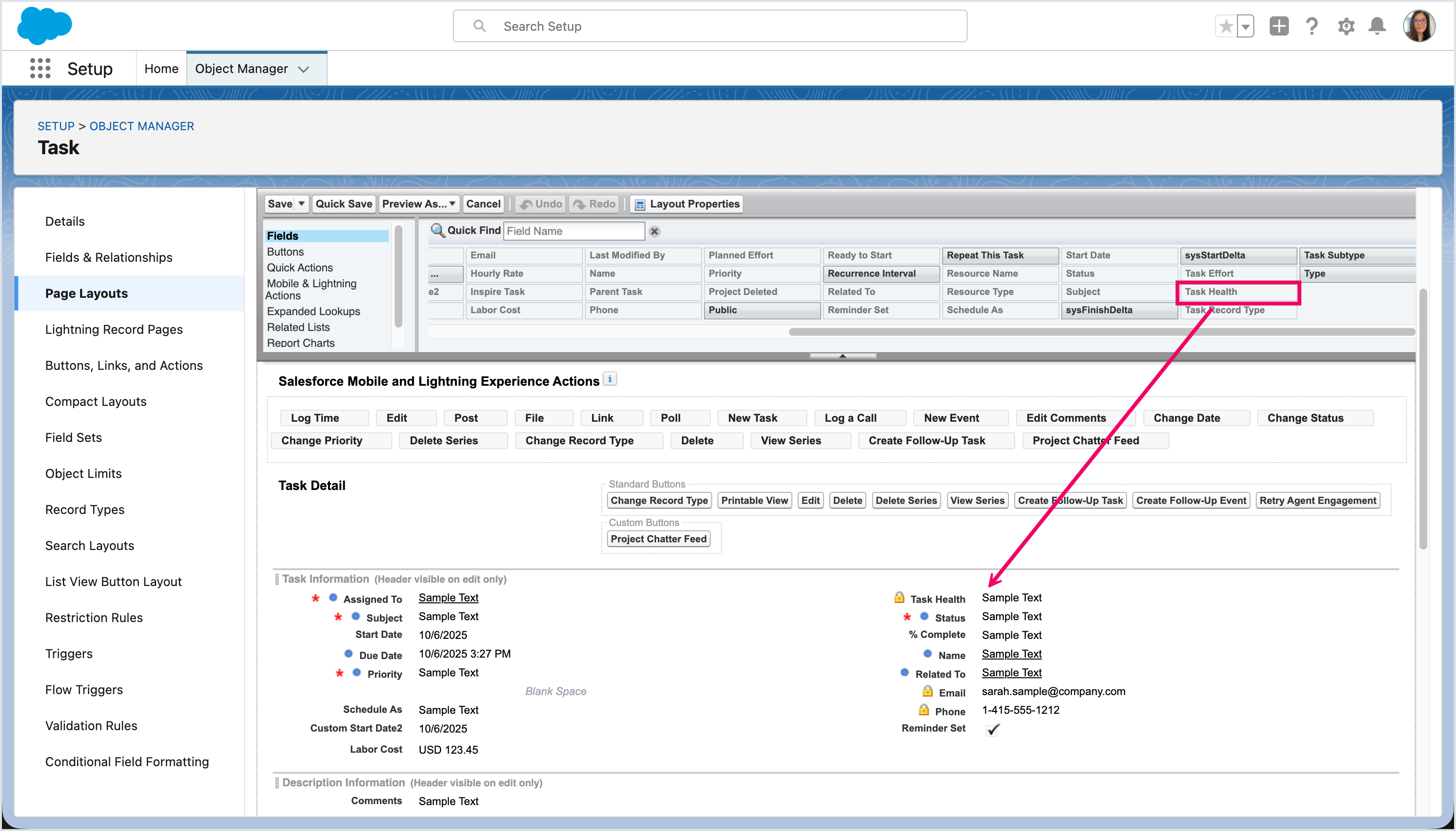 The next step is to add the Task Health field to the Salesforce Task page layout.