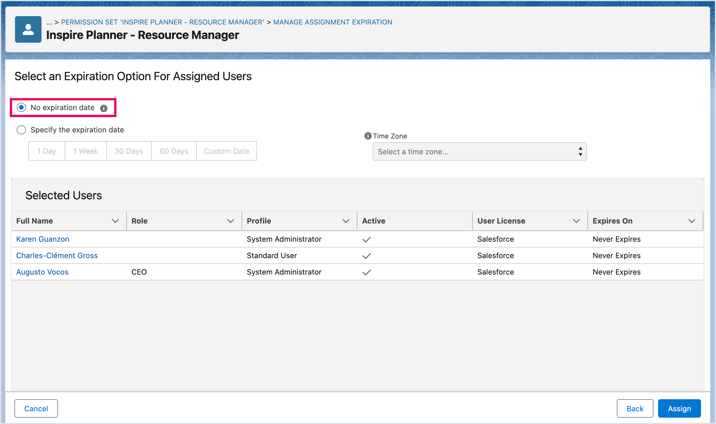 Assign the Inspire Planner - Resource Manager Permission Set to users who will be designated as Timesheet Managers.