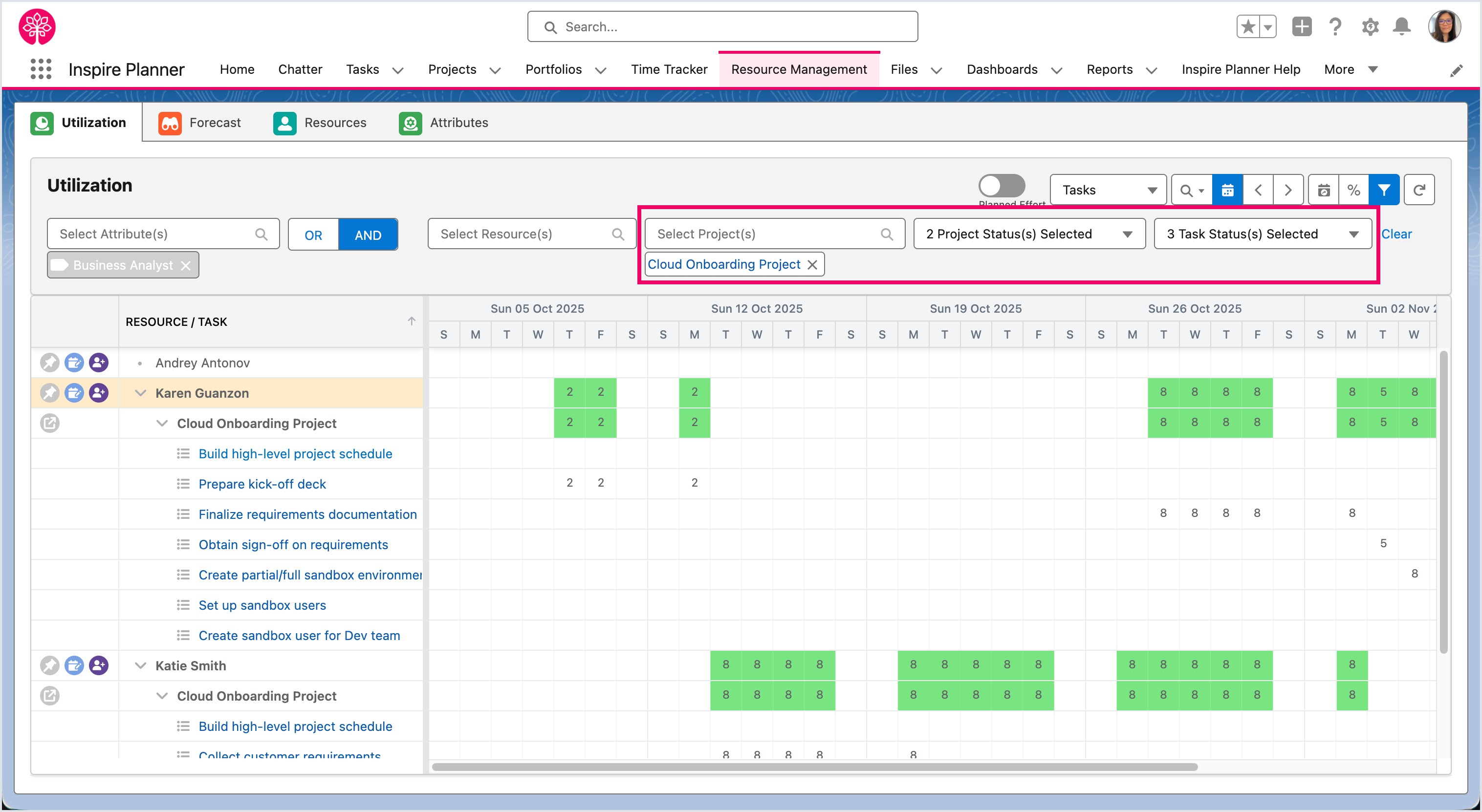 Monitor individual or team resource utilization to identify over- or under-allocation.